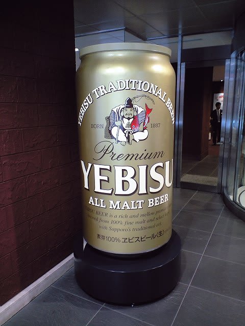 恵比寿ビール 缶の容器のやつは知りませんが、瓶では鯛を抱えてるおじさん。1000本に一本ぐらいの割合で両手に二匹の鯛を抱えてるのがあるんだそうです。
