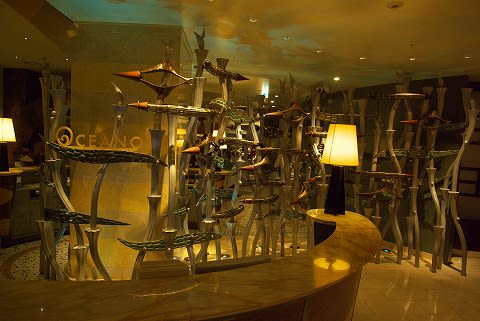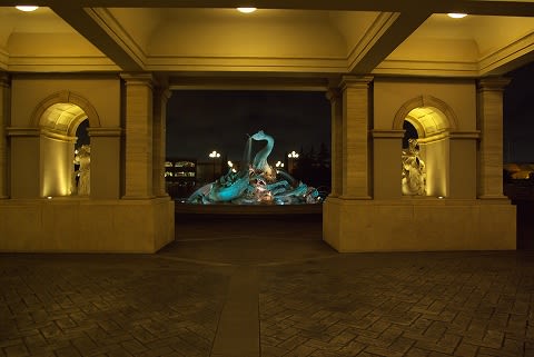 壁のモニュメント。このモニュメントの下はモニターになっていて、ディズニーのアニメーションが流れています。