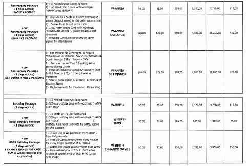 今回はアニバーサリー乗船という話をしてきましたが、このアニバーサリ−、結構曲者で、まぁ、日本船ならば、予約時に「アニバーサリーです」って申告しておけば、あとは船社さんがいろいろとお膳立てしてくれちゃうんですけど、外国船はコレだけじゃ駄目なんですね...