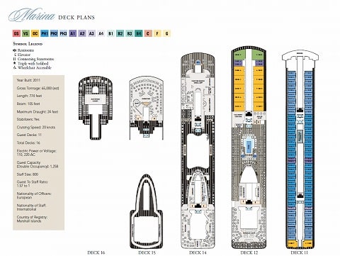 総トン:66,000 トン 船長:238.35 m 船幅:32.00 m 喫水:7.32 m 速度:20 ノット 乗客数:1,252 名 クルー:780 名