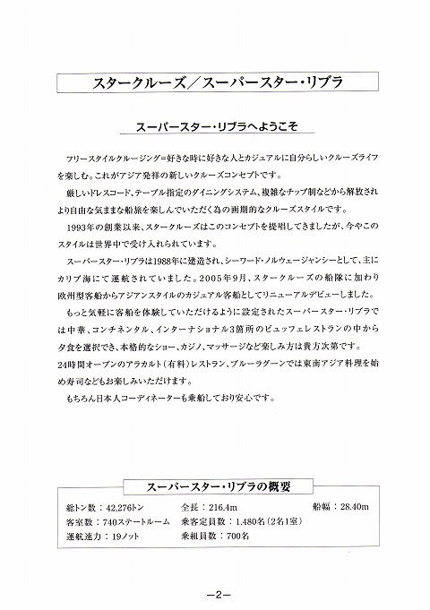 2010 スーパースター・リブラ マラッカ海峡クルーズ