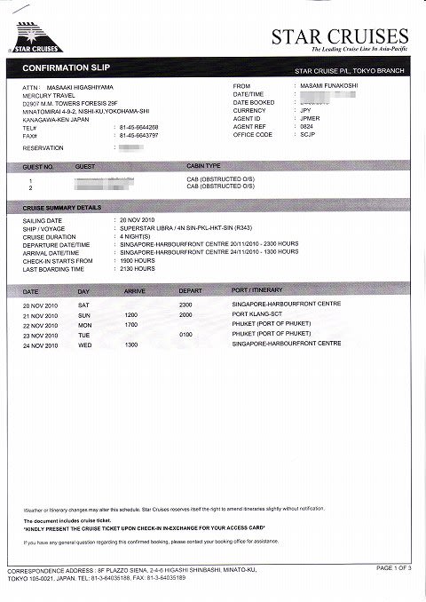 スーパースター・リブラ マラッカ海峡クルーズ 最終書類到着