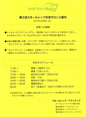 去る12/09に、「第2回 スモールシップ交流サロン」が行われました。