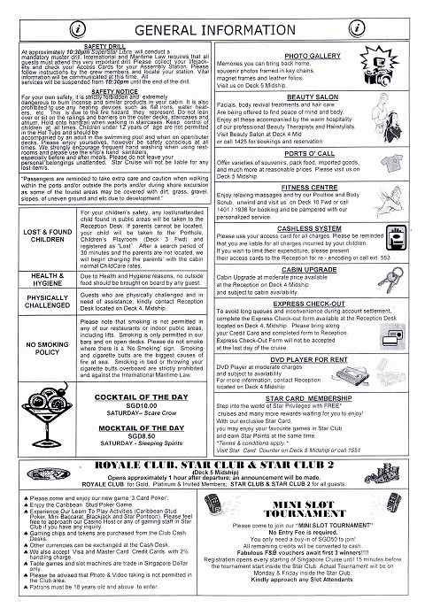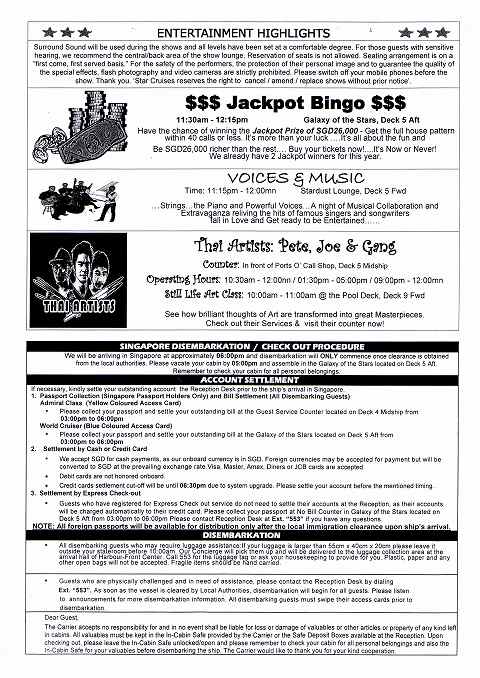 Star Cruiseの船内新聞は