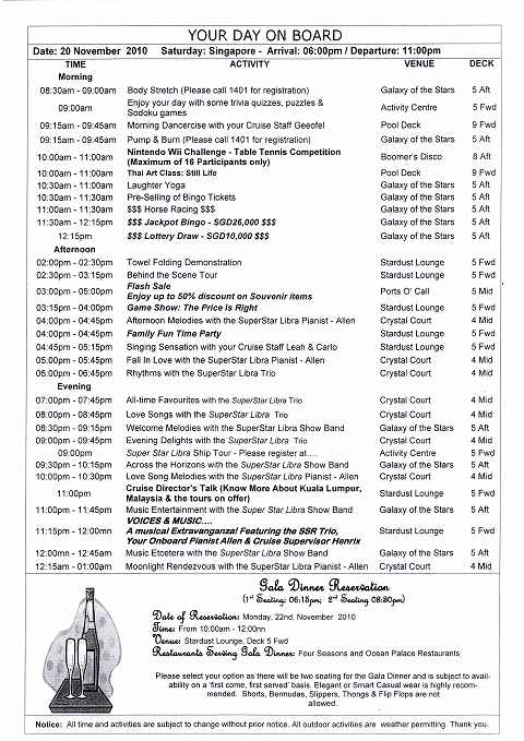 スーパースター・リブラ マラッカ海峡クルーズ その9 11/20船内新聞