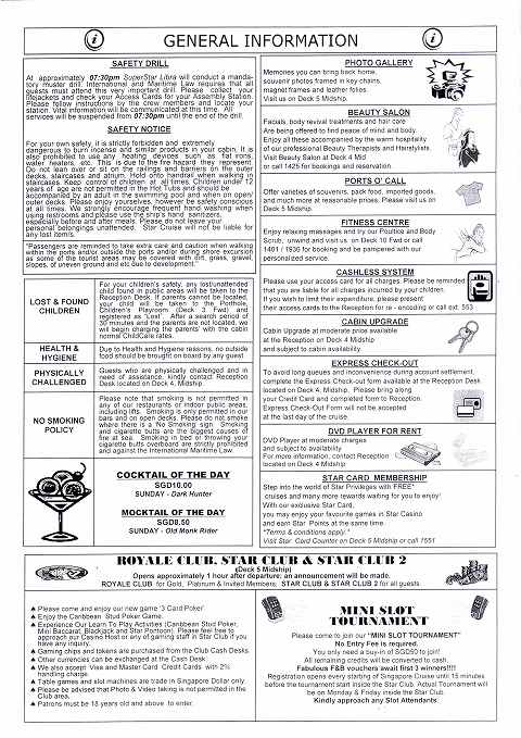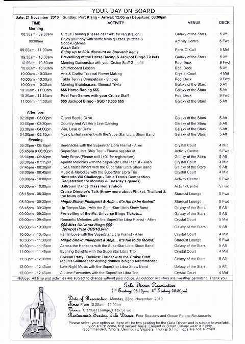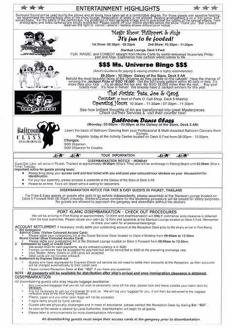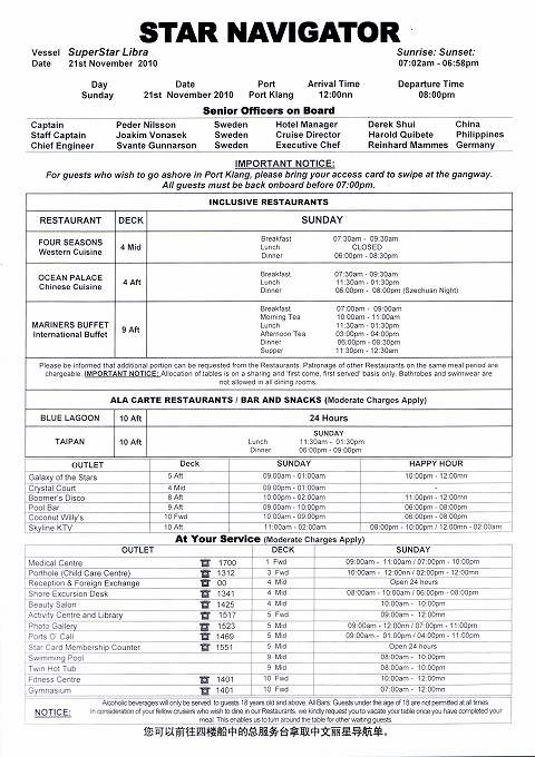 スーパースター・リブラ マラッカ海峡クルーズ その13 11/21船内新聞