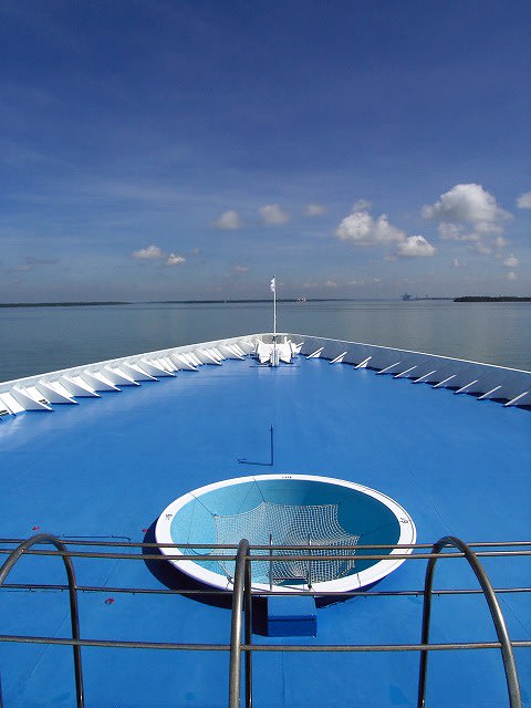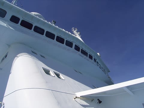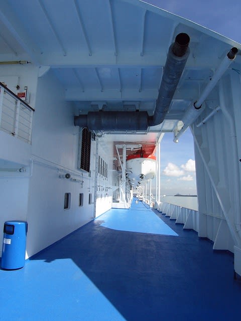 昔の船のデッキって緑色が定番だったけど、最近はブルーなのですね! 飛鳥Ⅱもそうでした。