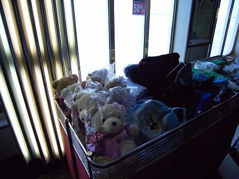 ポートケランで下船する乗客目当てのバーゲンセール。