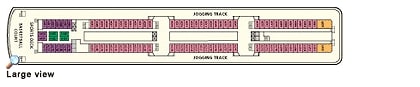 ちなみにこの船、10デッキもかろうじて船を1周出来ますが、10デッキの方は周回路としては整備されておらず、ジョギングやウォーキングなどは、この6デッキのプロムナードでの実施が指示されています。