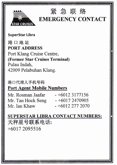 スーパースター・リブラ マラッカ海峡クルーズ インデックス2
