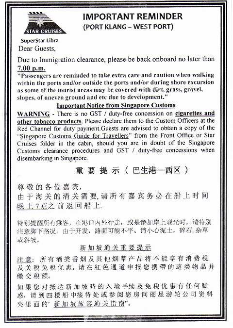 逆に言うと、クアラルンプールまで、船社提供のシャトルバスでも一人SG$30-ですから、US$換算するとUS$20-強っていうあたり。