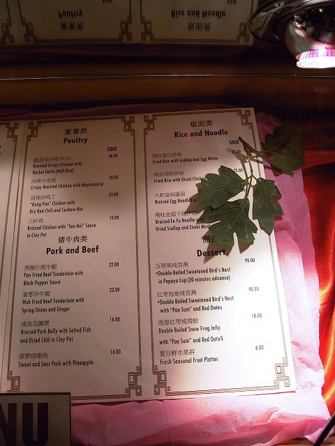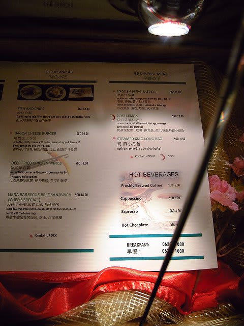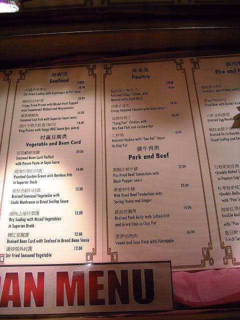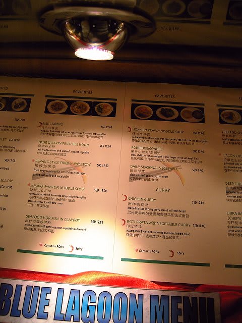 中華のレストラン"Ocean Palace"を出たすぐのところに、有料のサブレストラン、タイパンとブルーラグーンのメニューが飾られています。