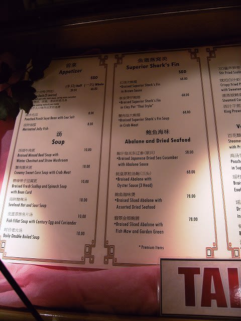 一枚目は前菜、スープ、フカヒレ、鮑など...
