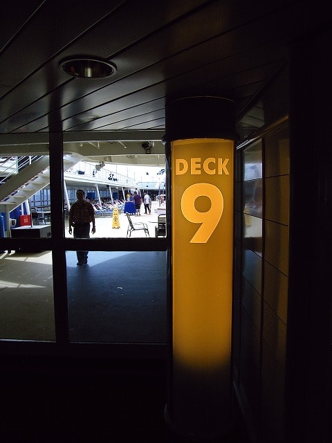 運動をかねて、3箇所ある階段のうち、一番船首側の階段を使って降りていきます。