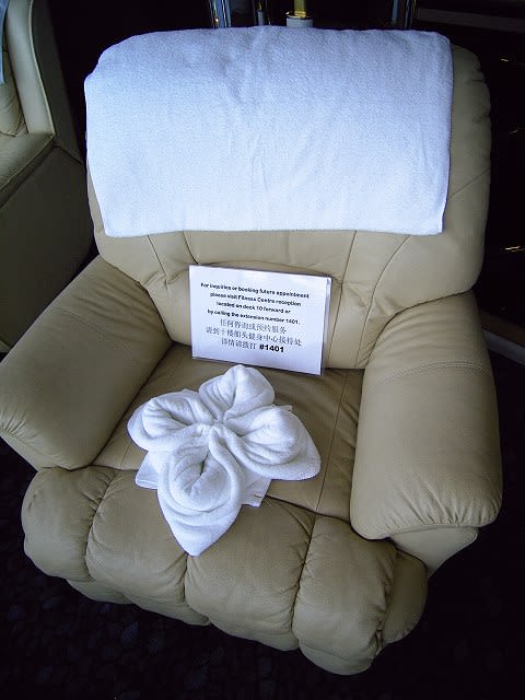 この船、全体に遊びと言うか、ゆったりとした空間が多いんですね。 タオルアート見事です。