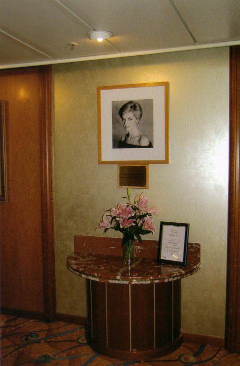 Her Royal Highness The Princess. そう、あのDiana妃がゴッドマザーなのです。 船内には各所に妃の写真やら記念品が飾られています。