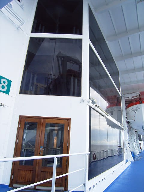 プロムナードです。船首側なので、屋根に相当する部分がありません。 ※10デッキの船首側の写真参照。