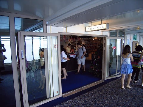 この船、パブリックスペースの通路は左舷側にしかありません ある意味、合理的?