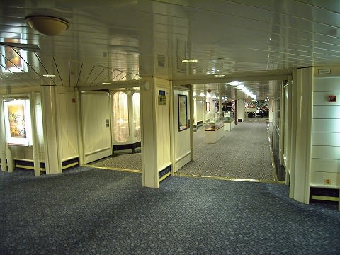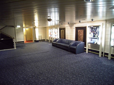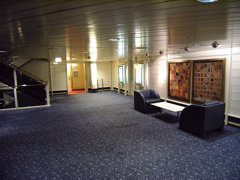 左側が美容室。右側はレセプション乗員室。 このデッキのfwd側は客室の為、パブリックスペースはfwd階段室より後方にしかありません。