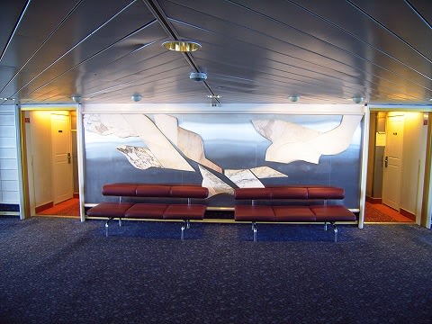 吹き抜け部分のデッキ5は、ちょっとしたロビー風。 階段脇にはこんなオブジェが。