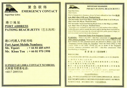 ココ、プーケットでも、ポートケランと同様、ホテルカードならぬシップカードが配られました。