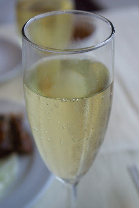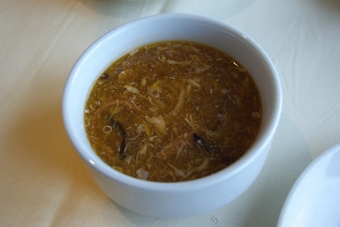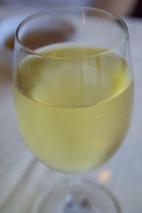 これ、乾燥帆立が入ってました。ちょっととろみのあるスープ。 美味です。 折角なのでお酒も... スパークリングと