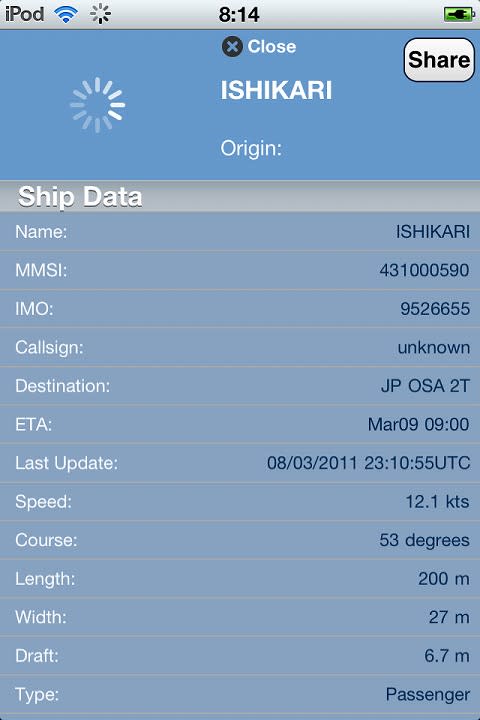Wattsさん、おはようございます。 Andoroid版もあるみたいです。 まぁ、このソフト使わなくても、safariでmarinetraffic.com開いても良いんですけどね。 このソフトとダグラスワード氏のベルリッツクルーズガイドは、ふねきちにはかなりの"萌え〜"ですね...v(^^)