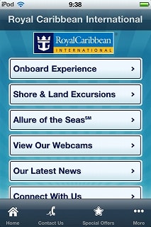 Description Please Note: This is Royal Caribbean International's official app. Whether you’re loyal to Royal Caribbean, or haven’t had the pleasure of cruising with us yet, we’ve made it easy to plan your next cruise vacation from anywhere. Get the answers to such questions as "Why cruising?" and "How much will it cost?" right at your fingertips. You’ll find all the information you need about a Royal Caribbean cruise vacation including details on worldwide destinations, cruise ships, ports of call and much more. See More. Do More. Why Not? Your application features include: -Find Your Cruise -Special Offers -Destination Information -Ship Facts -Deck Plans -Stateroom Description -Image Gallery -Oasis of the Seas Webcam -Latest News