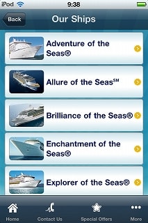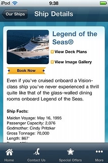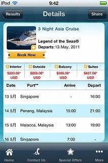 価格:無料 Category: Travel Updated: Mar 18, 2011 Current Version: 1.1.1(iOS 4.0 Tested) Size: 11.0 MB Language: English Seller: Royal Caribbean Cruises LTD Rated 4+ Requirements: Compatible with iPhone, iPod touch, and iPad. Requires iOS 3.2 or later