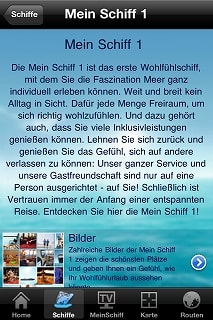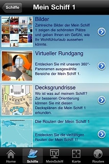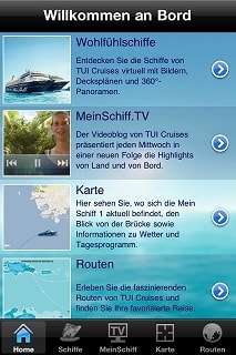 アプリの説明はドイツ語になってしまうので、割愛しますね... TUIという会社についてちょっと解説します。 ドイツマーケットを睨んだクルーズ会社というと、プリンセス系の"AIDA"が有名ですが、これをカーニバル系とするならば、"TUI"はRCI系と位置づけられます。 "TUI Cruises"は、TUI AGというドイツ企業と、ロイヤルカリビアンのジョイントベンチャーです。 会社のスタートは2009年と、まだまだ若い会社ですが、"AIDA"よりは若干上級よりのマーケットに照準を絞っているようです。 フリートは2隻。 どちらも元セレブリティの船で、 元Celebrity Galaxyの"Mein Schiff 1" 建造:1996 Meyer Werft 総トン:76,522 トン 船籍:Malta 元Celebrity Mercuryの"Mein Schiff 2" 総トン:77,713 トン Previously 船籍:Malta "Mein Schiff 2"は、2011年からの就航になります。 ちなみに"Mein Schiff"っていうのは"My Ship"のドイツ語です。