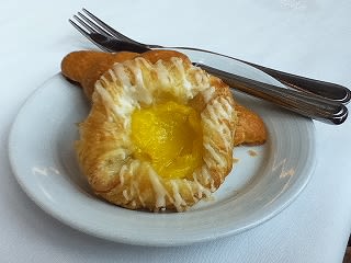 「オープンオムレツ」ですが… 日本語メニューには「オムレツ」と表示されていて『アレ』が出てきたので、ダイニングを出る時に、英語では何という料理なんだろう?と表に掲示されていている英語メニューを見たら… "Open omelet" って書いてあった記憶が…(^_^;) 日本語メニュー、ちょっと難ありです。 とは言うものの「オープンオムレツ」と日本語メニューに書いてあっても、想像つきません(;_;)