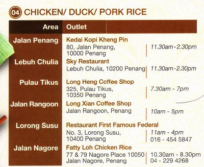 食べ物中心です。一応地図も付いてますが、この地図はレストランの場所を見るための地図になってます。例えばへんてこクライマーさんご推薦の"海南鶏飯"だと、こういう写真が載ってまして...