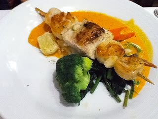 う〜ん...味濃い...食べるとこ少ない...皮は美味しかった... 連れ合いさんオーダー。"シーフードのケバブ"
