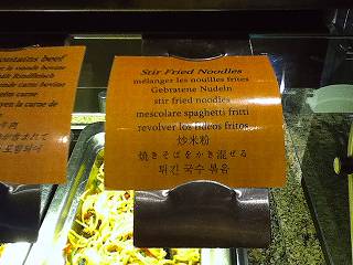 焼きそばをかき混ぜる(笑) そうめん"ちゃんぷる”ならば、かき混ぜ感がありますが・・・。 中国語表記は炒めビーフンですね? となりのカードには「〜まれて」と見えますが、まれてからどうなった?と突っ込みたくなりました。 ひき肉が麺に包まれて=小龍包とか。