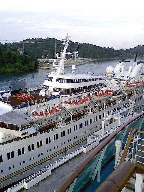 隣には新世紀郵輪の"Leisure World"が停泊中。