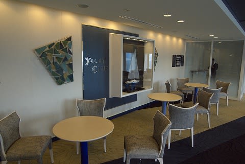 ヨットクラブの座席スペース。奥は喫煙コーナー。