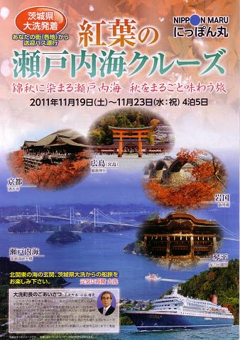 行き先もなかなか考えてますよね。 内陸部の皆さんにとって、西日本の瀬戸内海はなかなか行きにくい場所でしょう。 それに、実は岩国市長さんはクルーズファンで客船の岩国港誘致に熱意を持ってる方です。 岩国市側からも積極的な売り込みがあったとも考えられますね。 おいでませ!瀬戸内海へ!安芸の宮島へ!\(^O^)/