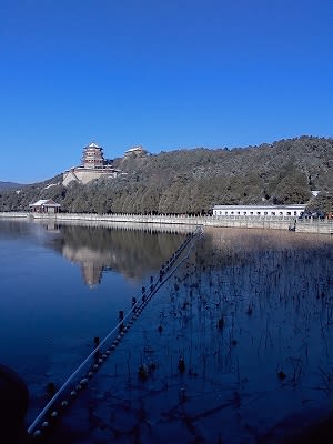 funship7さん、こんばんは。 寒かったですけど、この日は北京名物のスモッグも無く、快適な陽気でしたよ。 氷は池の端から20mくらい。まだ厚さ数cmだそうです。 一番寒い時には厚さが1mにもなるんだとか。