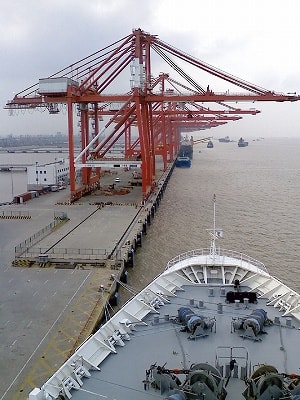 奥はガントリークレーンが立ち並ぶコンテナ桟橋ですが、Legendが停泊している場所にはガントリークレーンはありません。見た感じ、自動車専用船の桟橋のよう...