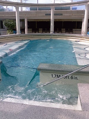 この写真は5デッキのパブリックスペースから撮ったものですが、波しぶきが窓をぬらしているのが解るでしょうか?