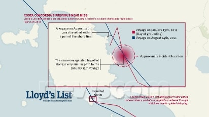 Exclusive analysis of Lloyd's List Intelligence vessel tracking data shows that Costa Concordia sailed within 230 m of the coast of Giglio Island on a previous voyage, even closer to shore than where it hit rocks last Friday.