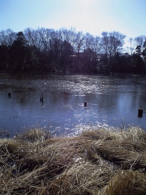 池は凍ってますねぇ...(^^;)