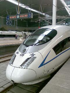 pandaさん、こんばんは。 北京南駅では見えたんですけどね。 中国の高速鉄道は乗る人以外はホームに入れないので、写真が撮れませんでした。