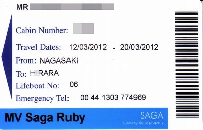 私も最初にもらった時は乗船区間が間違っていて、上海下船になってました。