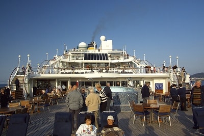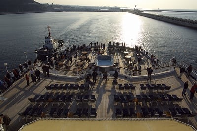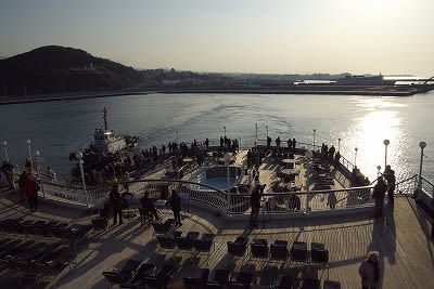 4件離岸のとき、後部デッキから港を眺めるのって・・・毎回、何故か「哀愁」を感じてしまう・・・センチメンタルです(微笑)デッキの椅子の陰が心ふるわせます(^^)
