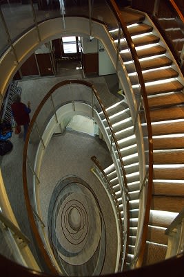 湾曲した階段が特徴。
