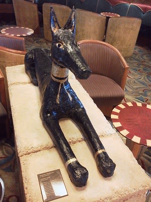 2件黒犬かわいい♪クレオパトラだけあって犬もエジプト風(笑) そうですか。意外と閉塞感があるんですか〜。 やっぱ、空が見えないからかなぁ。 プロムナードに面したキャビンに興味津々ですが、やっぱりプロムナード越しのお向かいの部屋から丸見えですねぇ(゜◇゜)ガーン 船首側のエレベーターホールはさすがにデカい! 頚椎ヘルニアの私には見上げること、不可能デス。 パブリックエリア、船がデカいだけあって、なんかスゴいですね! 続報をお待ちしております。 乗るあての無いのがツラいわぁ。早く来年のスケジュール発表にならないかな〜! 最近は「ボイジャーに縁が無いってことは、アリユールが呼んでるってことじゃない?」と心の悪魔が囁きます(;´Д`)