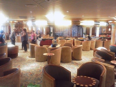 まりさん、こんばんは。 プロムナードビューの部屋は、正直、勘弁かなぁなんて思いました。 だって、夜中まで結構うるさいんですよ。 イベントとか結構ココでやるし。 向かいが丸見えっていうのも確かに有ります。 エレベータホールは、船尾の方がもっとでかいです。 なにせ、下は3デッキから14デッキのバイキングクラウンまで吹き抜けなので...