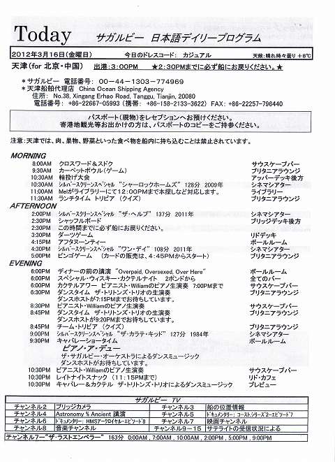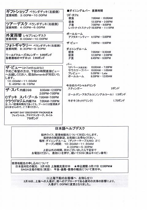 SAGA RUBYコレクターズボヤージ その33 3/16 その1 日本語船内新聞