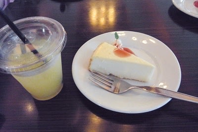 トラベルカフェだったので、お茶とケーキが付きました。